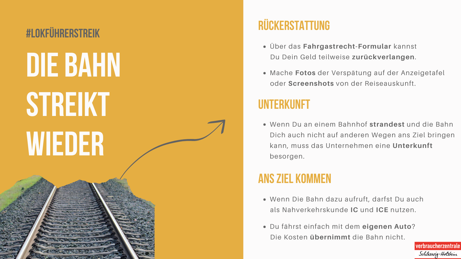 Urlauber und #Berufspendler aufgepasst: Seit der Nacht zum Montag kann es wegen eines erneuten #Streiks der Lokführergewerkschaft #GDL bei der Deutschen #Bahn zu Zugausfällen und Verspätungen kommen. Diese Fahrgastrechte gelten, wenn die Züge stillstehen: https://t1p.de/VZSH-Bahn