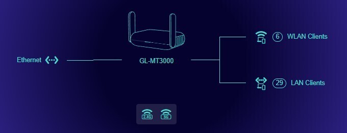 This is what @GLiNetWiFi@twitter.com has in #BerylAX and I'm missing in standard OpenWRT UI, a quick birds eye overview of the system