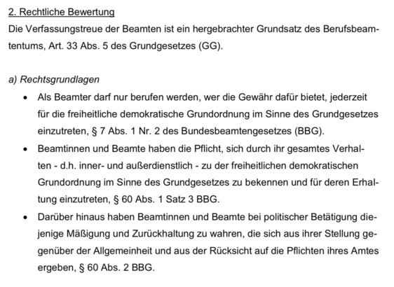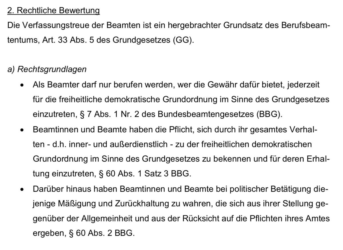 Da steht nicht: „… wer sich nicht verfassungsfeindlich verhält…“. Liegen begründete Zweifel an der Verfassungstreue vor, müssen diese ausgeräumt werden. Dafür trägt der/die Betroffene die #Beweislast. Mit #Beweislastumkehr hat das nichts zu tun.