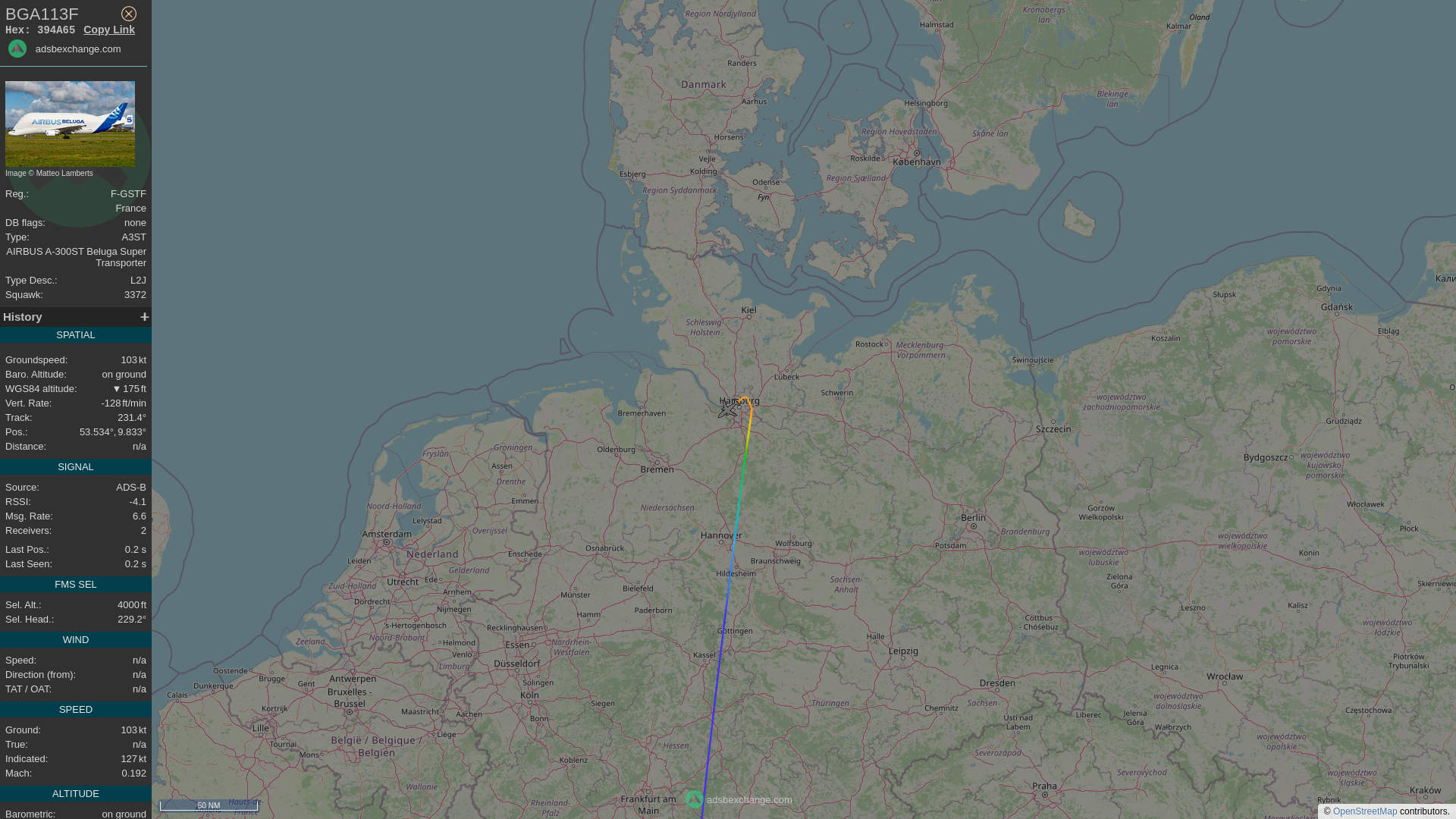 Airbus #Beluga flight #BGA113F (#F-GSTF) landed at Hamburg-Finkenwerder Airport at 8/25/2023, 9:23:04 AM