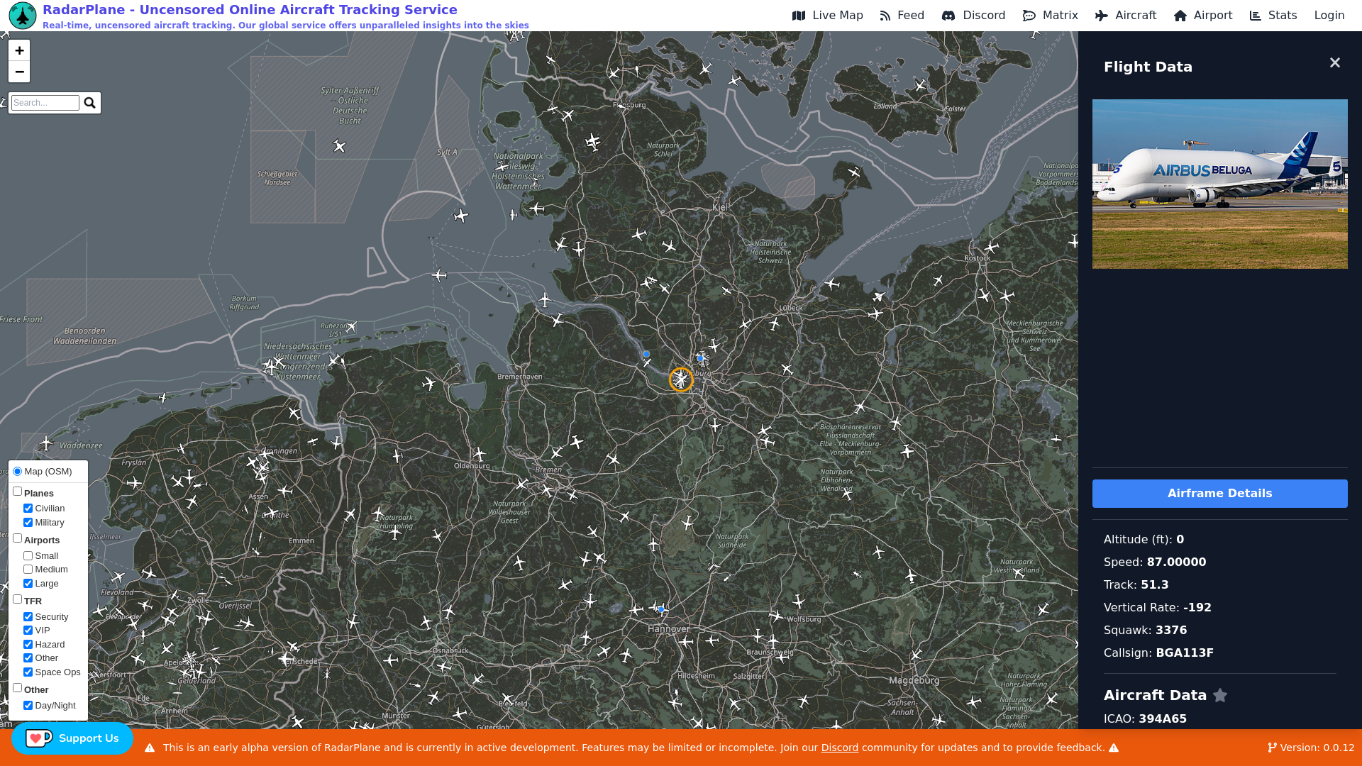 Airbus #Beluga flight #BGA113F (#F-GSTF) landed at Hamburg-Finkenwerder Airport at 1/17/2023, 1:36:26 PM