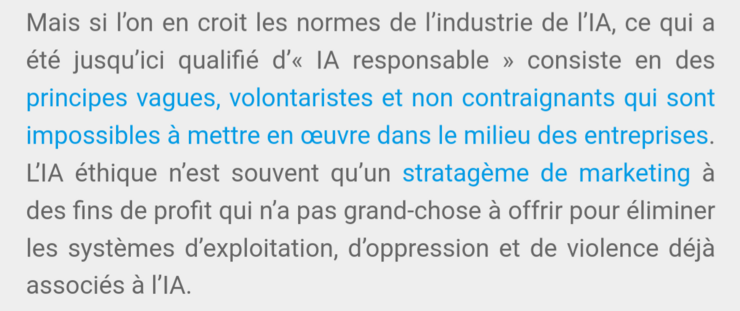C'est d'ailleurs pour cela que des problèmes de fonds.tels que l'exploitation des populations précaires ainsi que les #biais sexistes, racistes, validistes et LGBTQIA-phobes ne sont presque pas abordés.