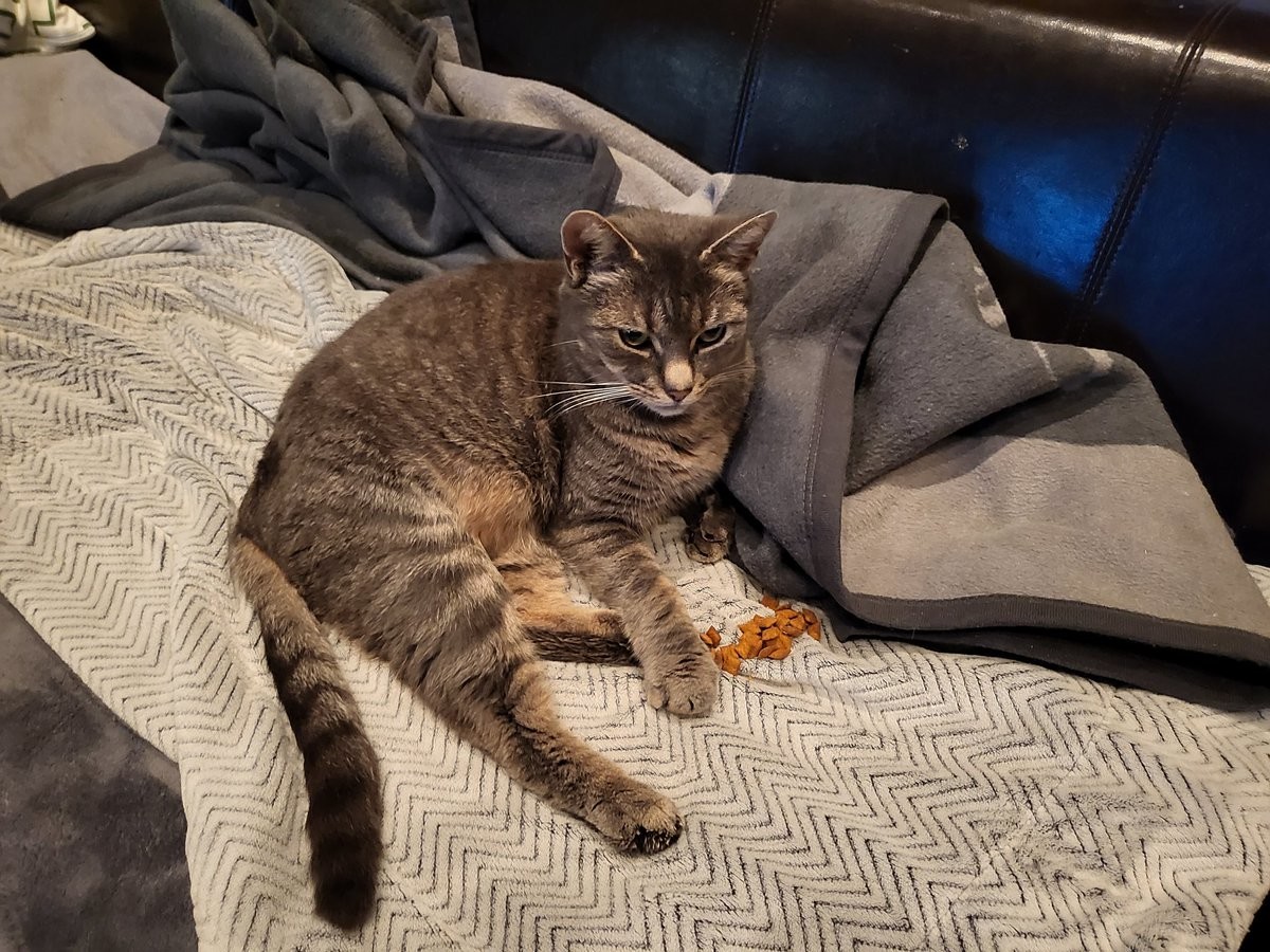 Und ich stehe jetzt hier mit Leckerlies und der Tablette und drei Nervkatzen... 🙄