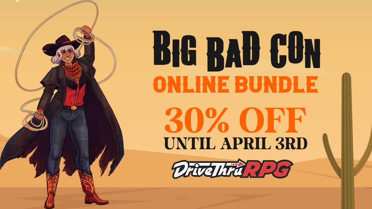 We are also working with the awesome @drivethrurpg people for #BigBadOnline, March 31st - April 1st! 🌵