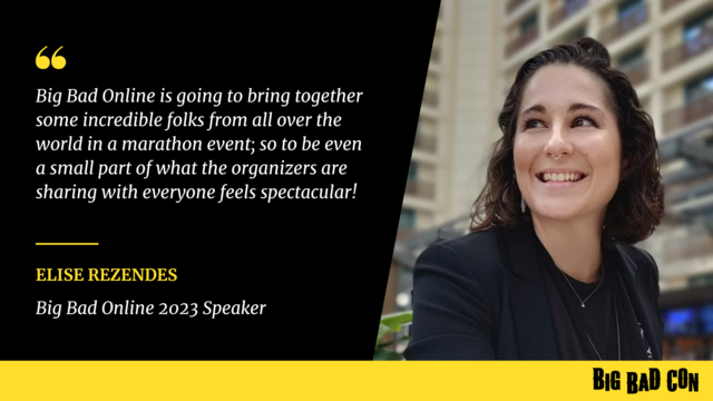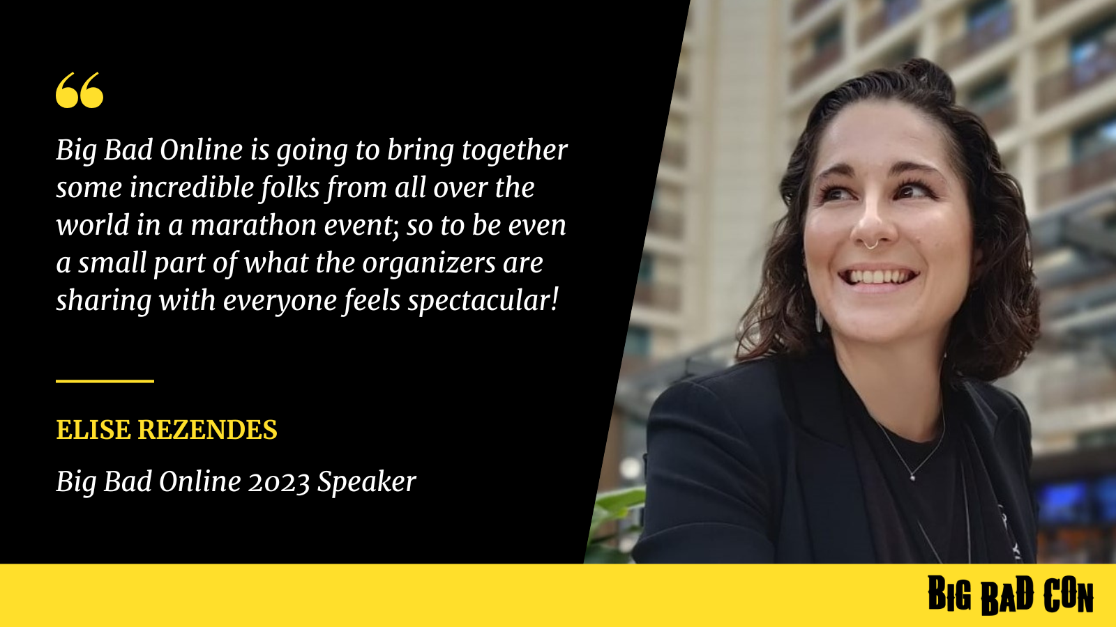 "Big Bad Online is going to bring together some incredible folks from all over the world in a marathon event; so to be even a small part of what the organizers are sharing with everyone feels spectacular!" - @Blikimor #BigBadOnline 2023 Speaker