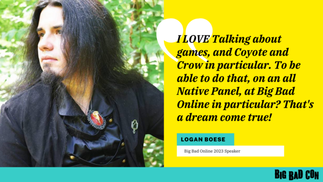 "I LOVE Talking about games, and Coyote and Crow in particular. To be able to do that, on an all Native Panel, at Big Bad Online in particular? That's a dream come true!" - Logan Boese #BigBadOnline 2023 Speaker