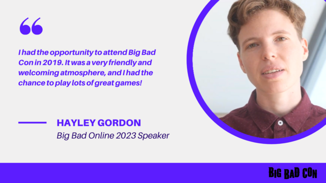 "I had the opportunity to attend Big Bad Con in 2019. It was a very friendly and welcoming atmosphere, and I had the chance to play lots of great games!" - Hayley Gordon #BigBadOnline 2023 Speaker