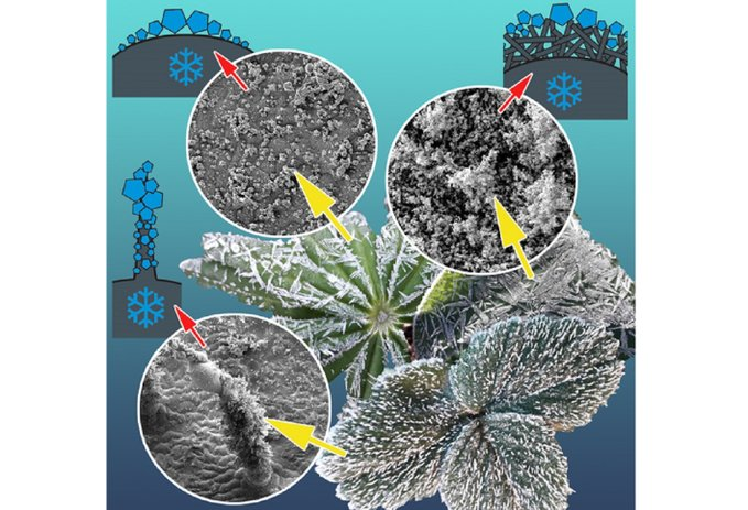Pflanzlichen Patenten auf der Spur: Winzige Strukturen auf den Blattoberflächen schützen manche Gewächse vor Schäden durch Vereisungen, zeigen kryomikroskopische Untersuchungen.