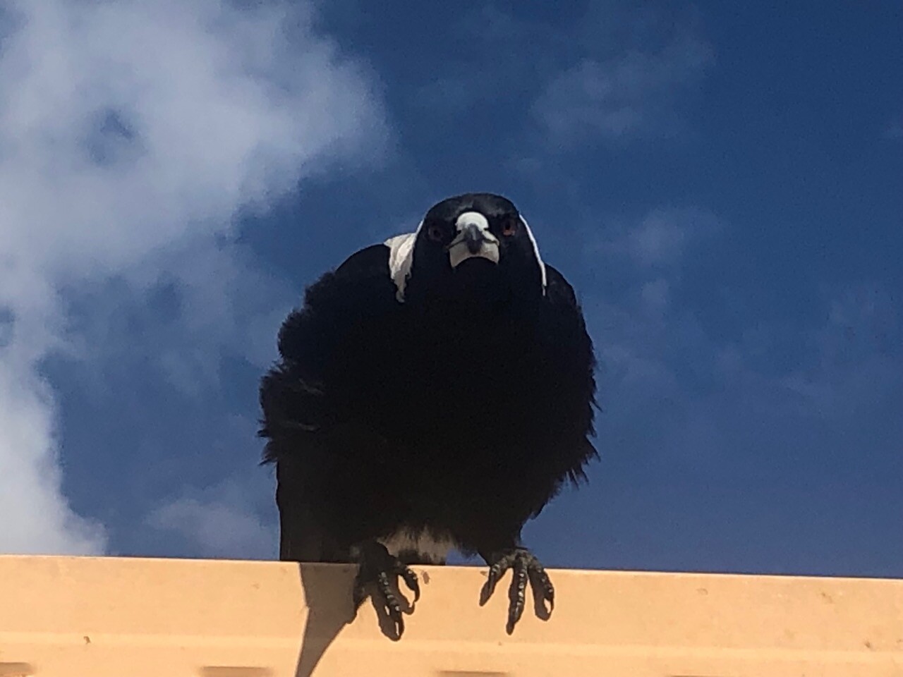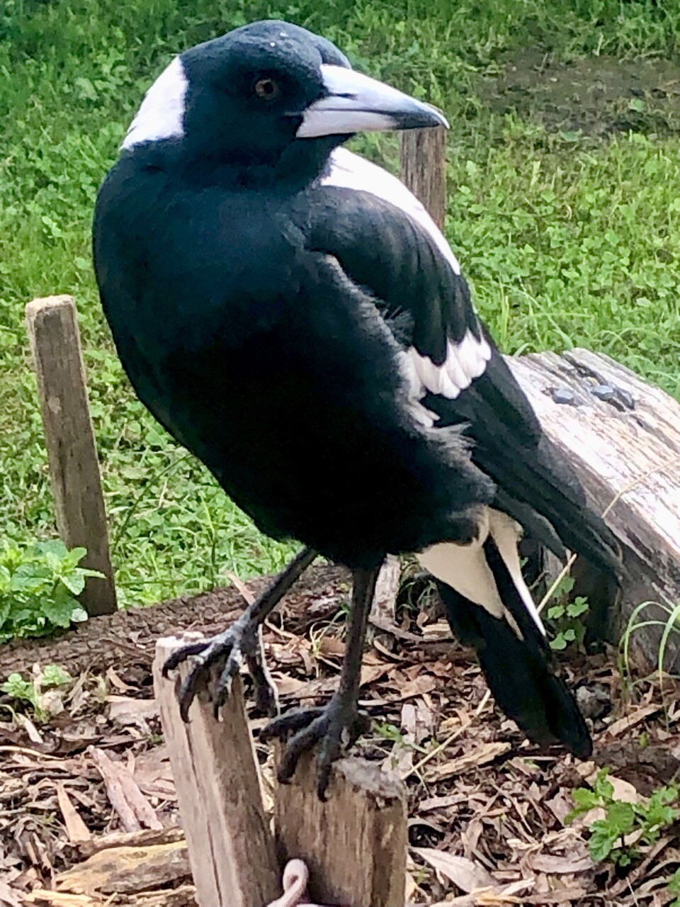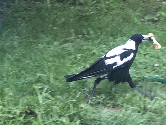 Minty, 3 wing stripes is the youngest in the clan and has learned to feed when everyone else is distracted. Magpies are positive and negative re-enforcement learners. If it works once I’ll try again. If not, I’ll try something different.