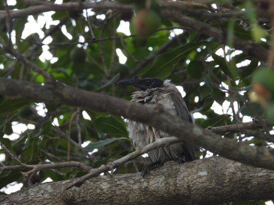 And this young noisy friarbird, just out of the bird bath and fluffed up - looking every bit the Disney villain