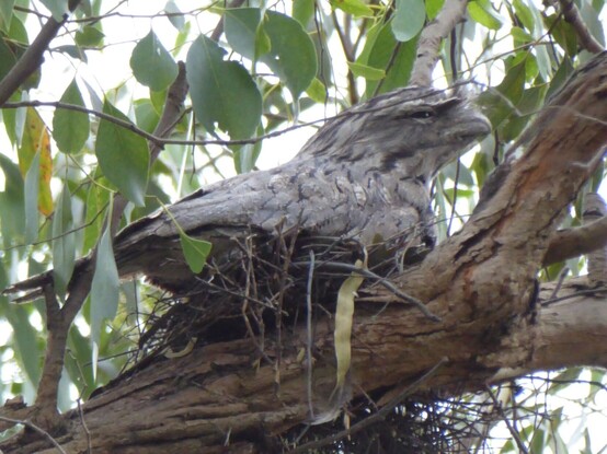 A Tawny Frogmouth nesting in late January is unusual? Nevertheless, here we are.