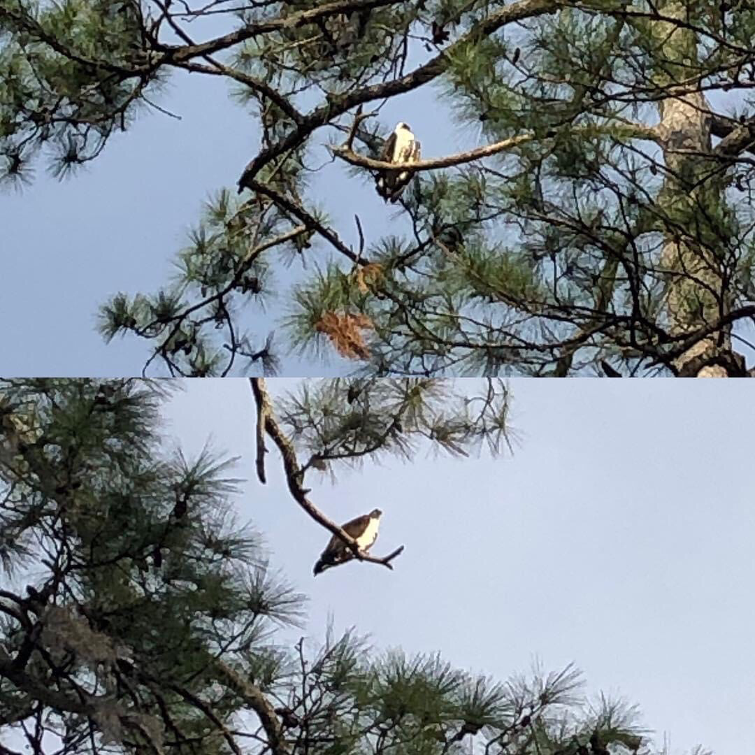 From a couple of years ago — Mr. & Mrs. Osprey must have had a little Valentines Day spat, sitting in adjacent pine trees.