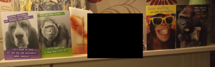 Oh and the black obfuscation in the middle is a photograph in a frame, which is not relevant for the joke (;*