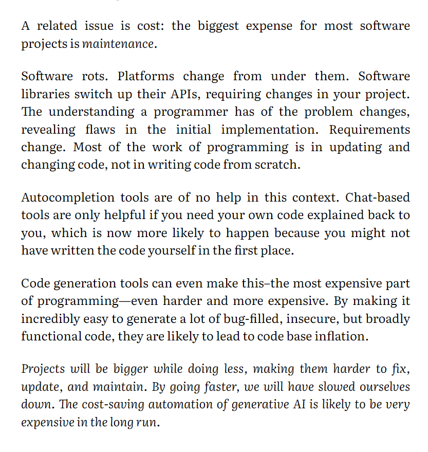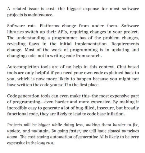 Excerpt from Baldur #Bjarnason's book, "The Intelligence Illusion: a practical guide to the business risks of #GenerativeAI":