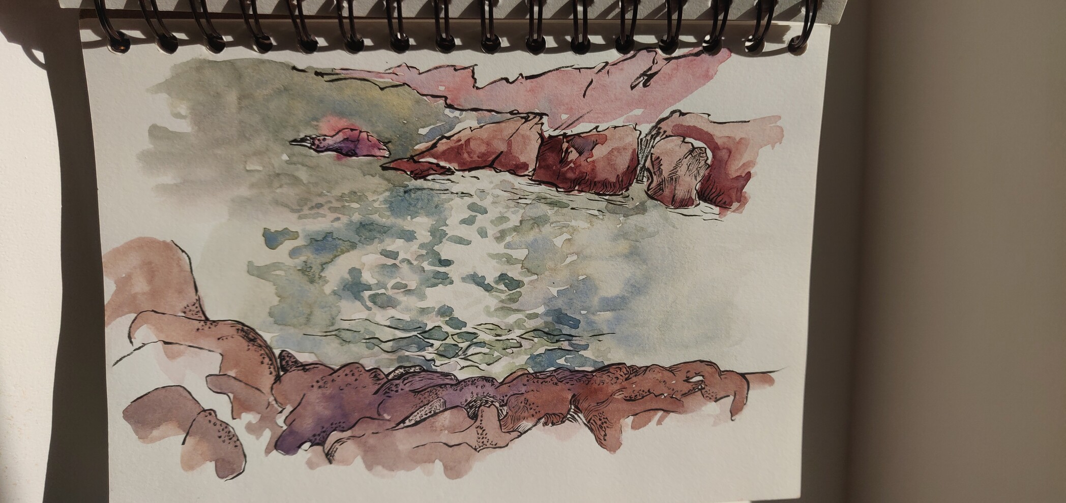 Another older one, didn't get time to make anything today. This the south west coast of devon, the rocks are amazing alien worlds full of weird beasties. The others fished for wrasse and I swam. The autumn water was sharp and wholesome and clear, and the sun on it was hypnotic. #blackink and an eBay #watercolour pen.