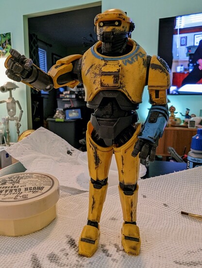 Working on making this #StarWars figure more realistic by dirty-ing it up. It was way too clean to start with. Of course I didn't think of getting a before PHOTO. The Droid is from Obi-Wan Kenobi series NED-B