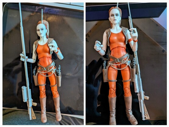 This Aurra Sing Black Series is really good sculpt except that they definitely cut costs on any texture. Like the gun is so plastic looking. I have a calendar reminder to work on it tonight. First I'm going to do a black or brown panel wash to bring out some detail. I might have to repaint the whole gun as it just looks bad.