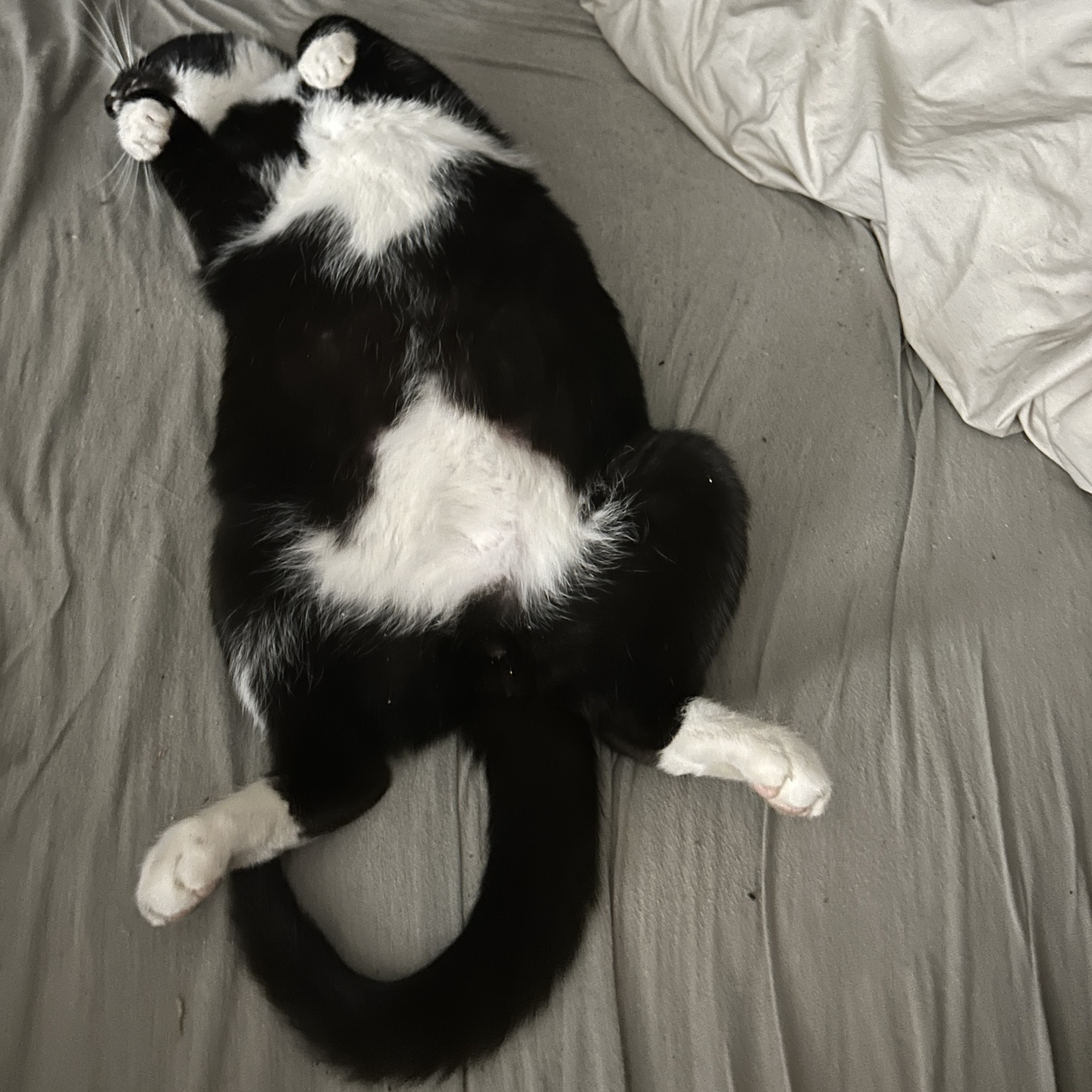 He can stay locked in this post-petting blissed-out position for a very long time.