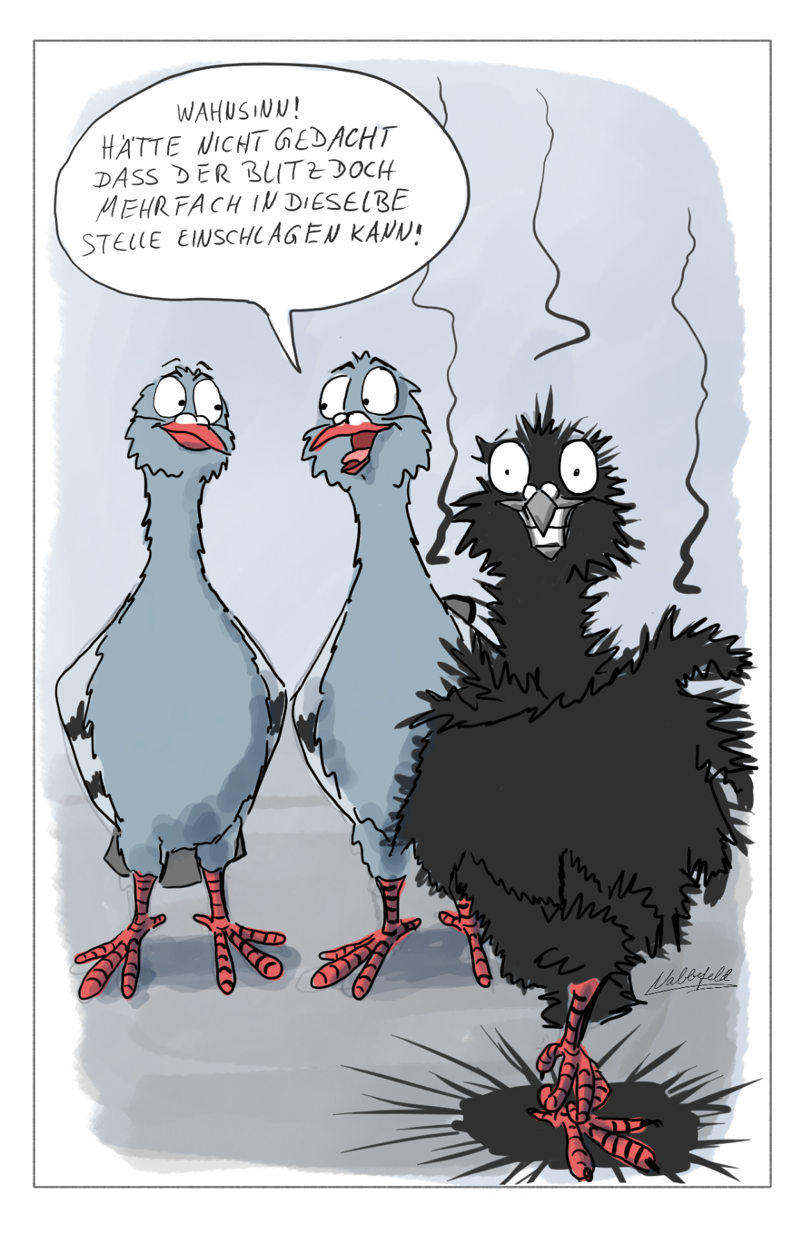 #nabbefeld #sandranabbefeld #cartoon #cartoonist #comic #absurd #humor #lustigebilder #tauben #illustration #lustig #vögel #blitz #blitzeinschlag #sprichwort