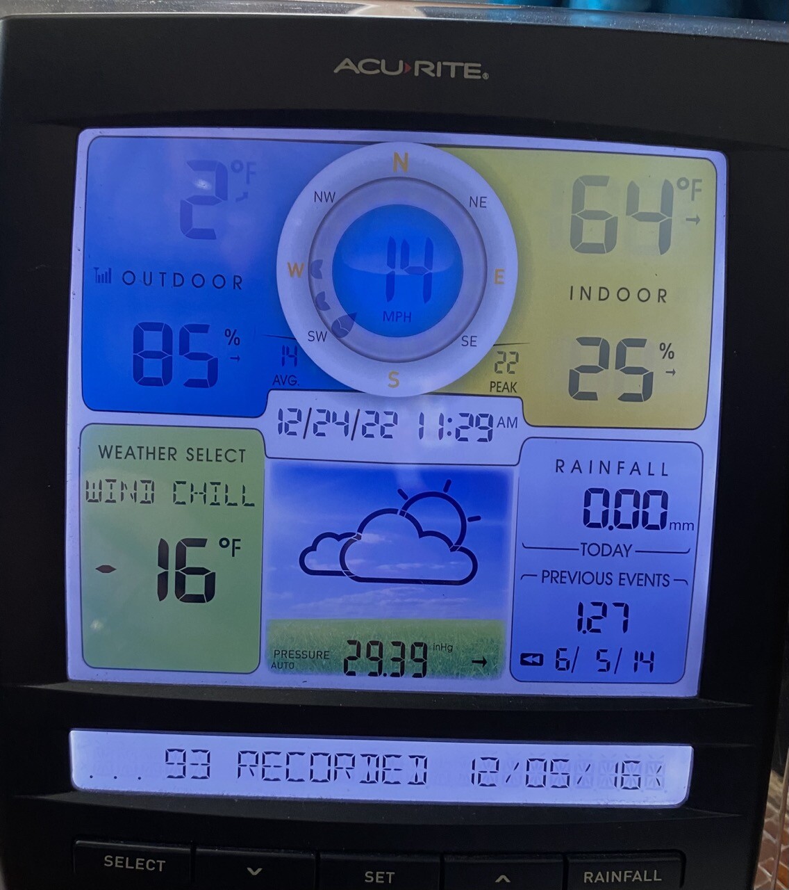 Current temperature reading in #FranklinvilleNY #Blizzard2022 #BlizzardNewYorkState