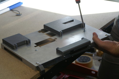 Un défaut de cette carte mère était l’emplacement de la batterie, celle-ci nous a contraints à produire une “caisse” pour la soutenir. Les deux autres “caisses” sont vides et ne servent que pour l’équilibre.