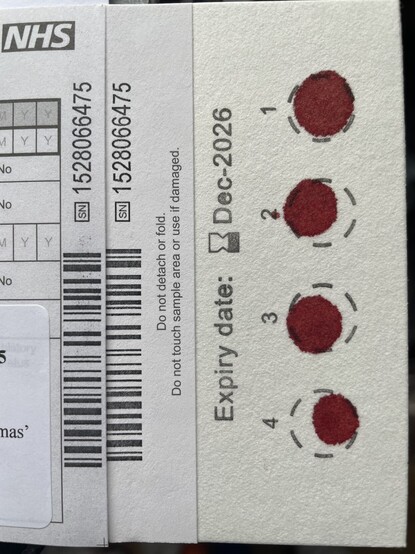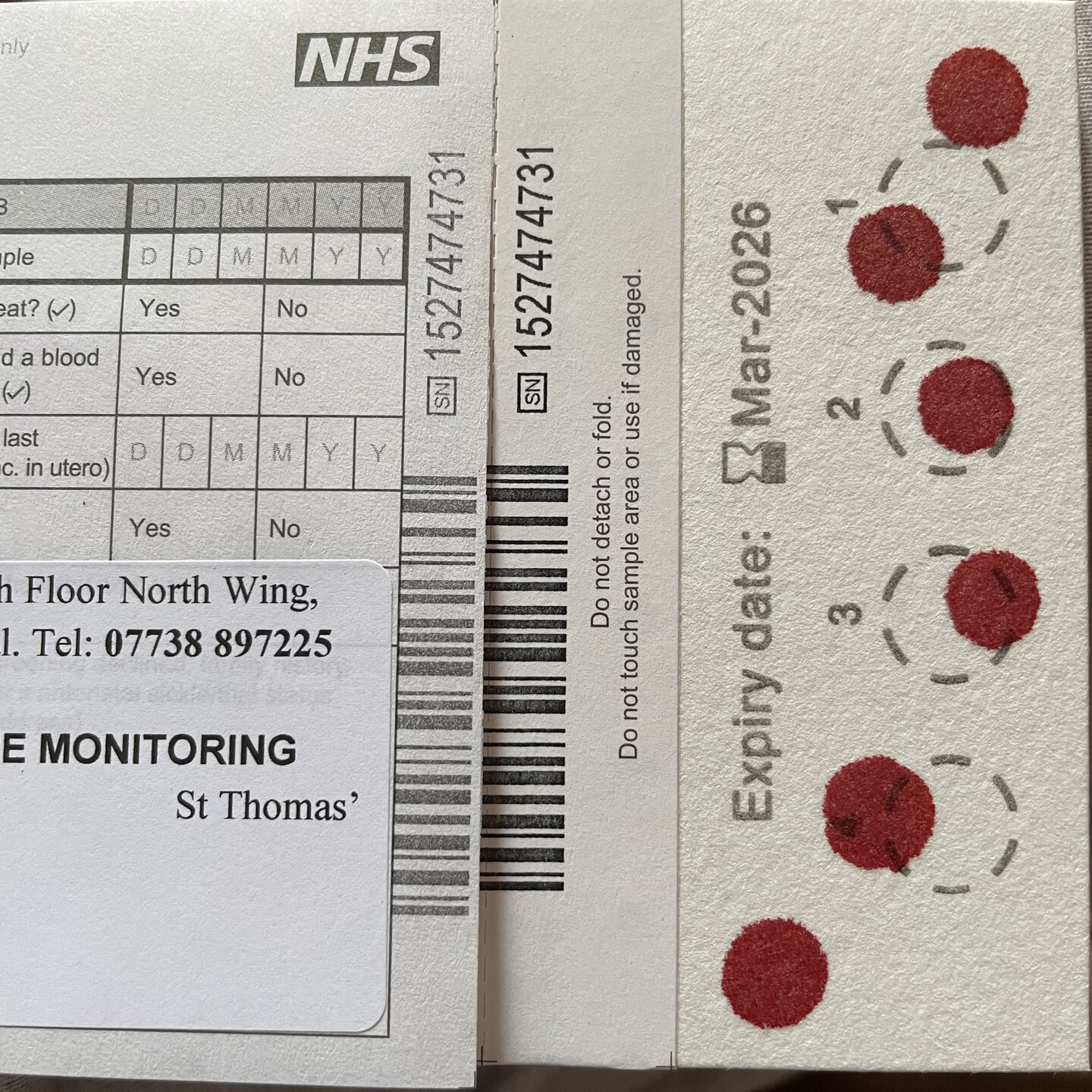 Just done the blood spot. Very happy with the blood spot circles! #pku #Phenylketonuria #phenylalanine #bloodspot #bloodspots #blood