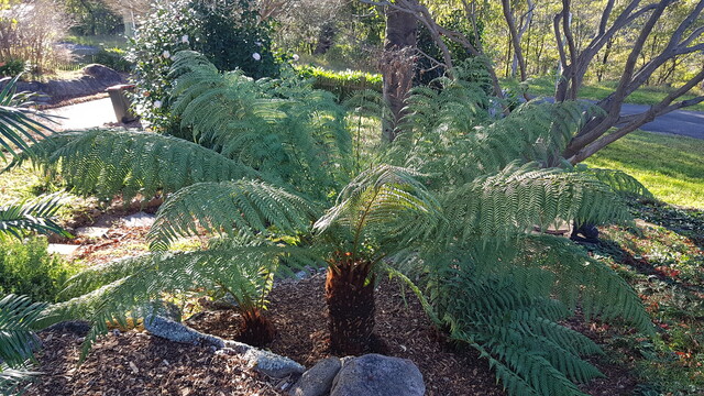 This fern tree was mislocated in Drummoyne near Sydney Harbour for about 15 years. Too warm and sunny for it there. Grew to 2m but super spindly 150mm dia trunk. Nearly falling over. Rescued it and brought it back to its #BlueMountains home. Put 1m into the soil. Trunk is now about 400mm and it throws out huge fronds that have to be pruned back frequently. Has put on about 500mm height in 4 years, too.