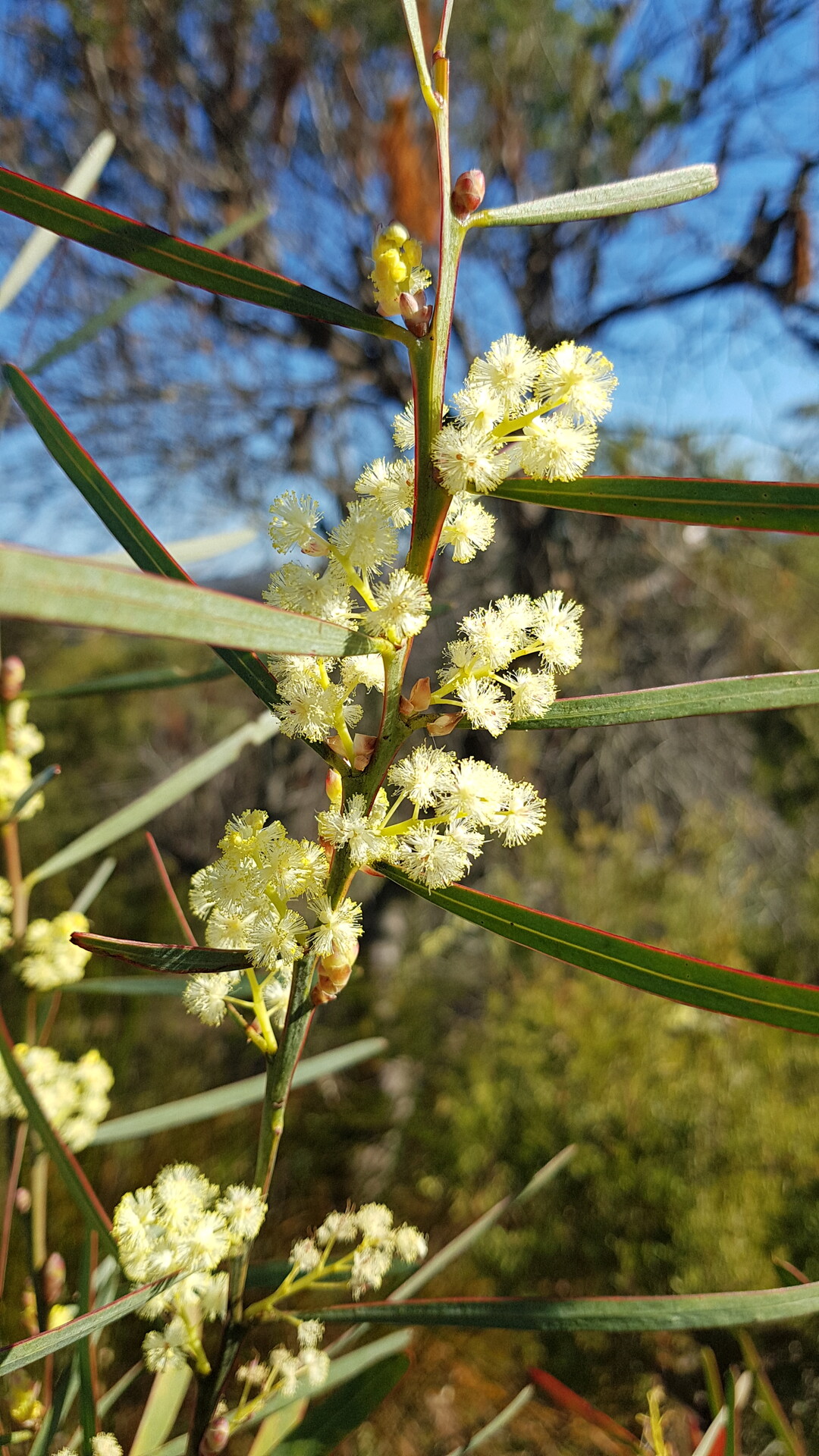 Fuzzy yellow wattle flower poufs are popping. Tough seed pods of Hakea pachyphylla. Tiny seed inside that tough nut but yellow tailed black cockatoos love cracking them open. Allocasuarina seed pods are the primary food source for the very picky Glossy Black cockatoo. In the distance at 13km NW, the Mt Hay 'round top' peak on the right and the 'flat top,' aka Mt Hay Wall on the left.