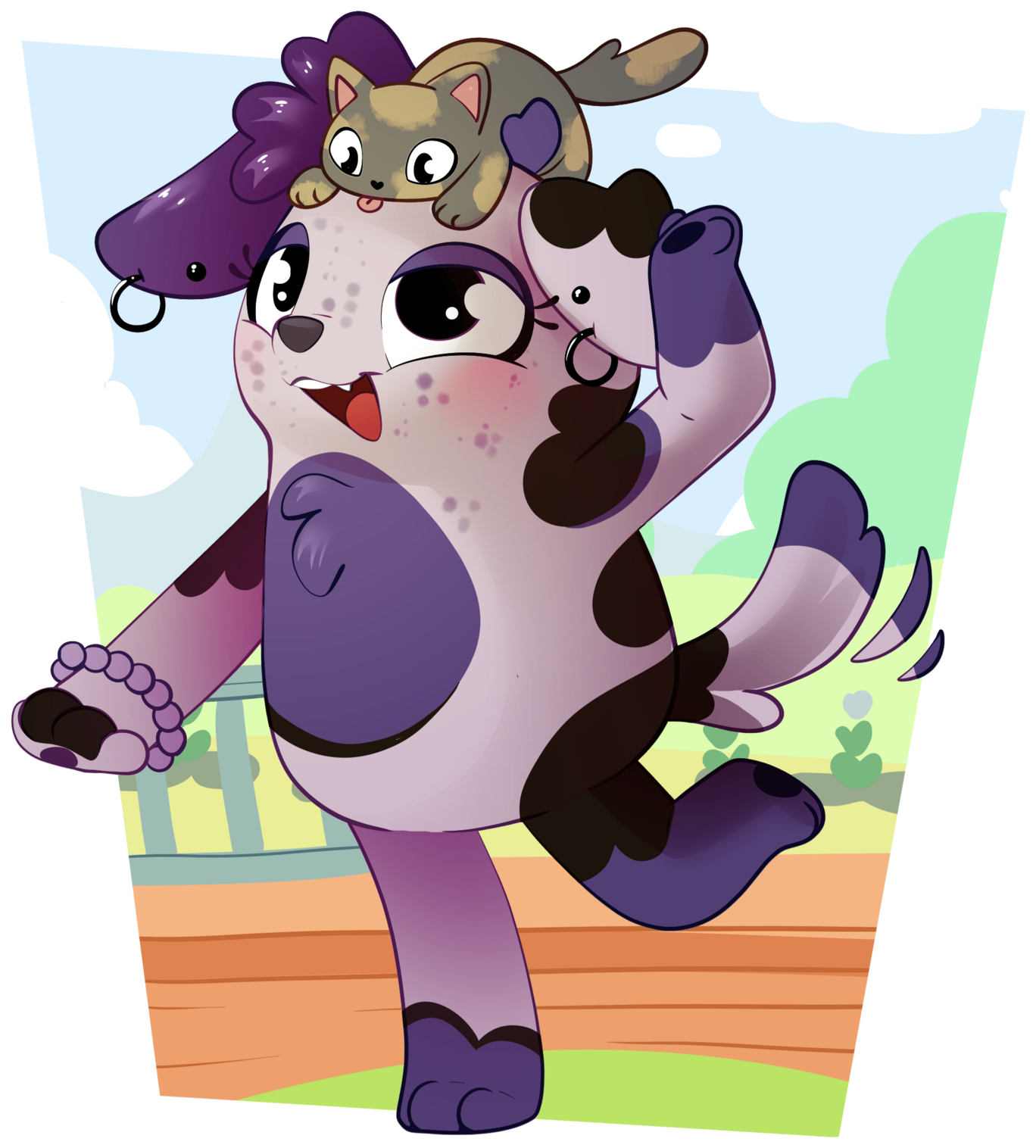 First Bluey OC attack! I was so excited to see a bluey OC when I went looking for what character to draw on my revenge! And it even comes with a kitty! This year I'm not spending a lot of time on backgrounds, but I wanted to make something that looked like the nackgrounds in the show ^^