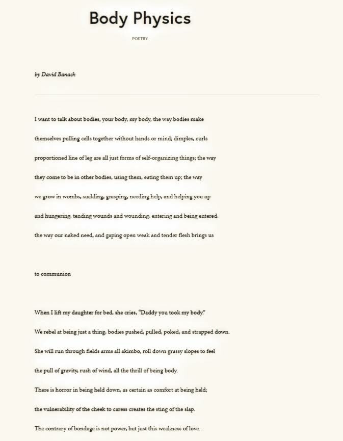 Control of our bodies and autonomy in decisions concerning them is a basic human right. I'm happy to have this reflection on the way the vulnerability of our bodies grounds that right and brings us together out in new issue of Evocations Review. There are so many timely poems in this issue. You need to see it!