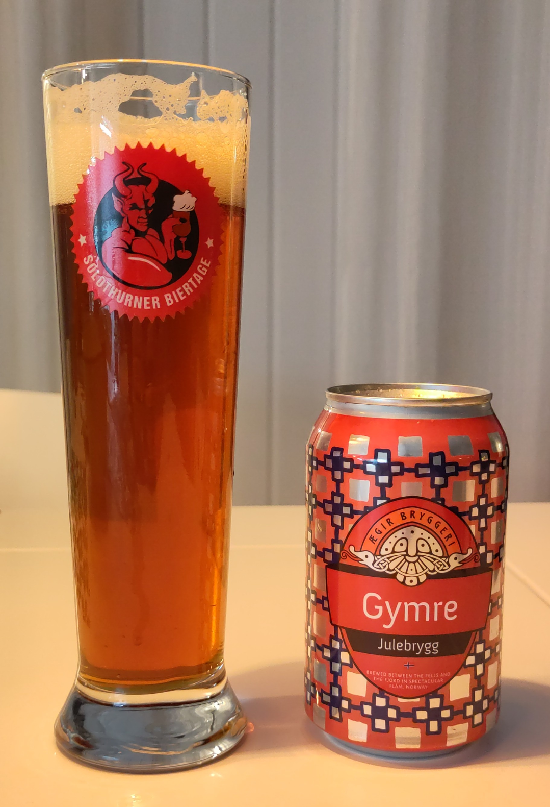 Hah. Jeg kom på at jeg faktisk tar helg i dag, så da er det jo helt på sin plass å prøvekjøre enda en butikkøl. Denne gangen er det en røver fra Ægir, ved navn Gymre. Mørkt, klassisk juleøl, men med et hint av torvrøkt malt.