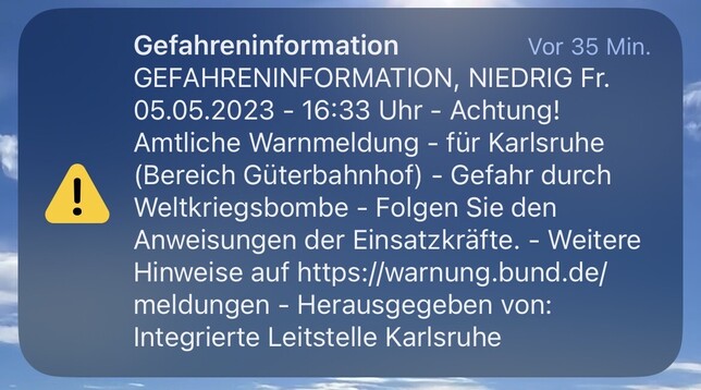 #nina #cellbroadcast #karlsruhe #bombenfund
