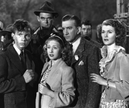 Bonita Granville at the center of the cast of “Nancy Drew… Trouble Shooter” (1939), the third of four Drew mysteries filmed in the late 1930s