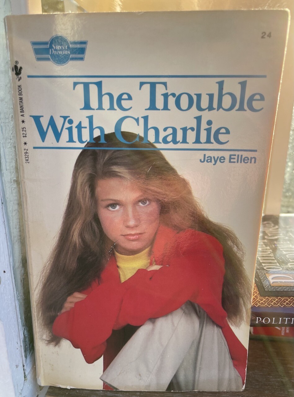 The Trouble with Charlie is her severe lack of a torso. Seriously. Where is it? And where is her other leg? I’m so confused about her posture in this photo. She looks really unhappy with the photographer who put her in this awful poise. Number 24 in the Sweet Dreams series. From 1982. #teenromance #romance #bookcover #boostodon