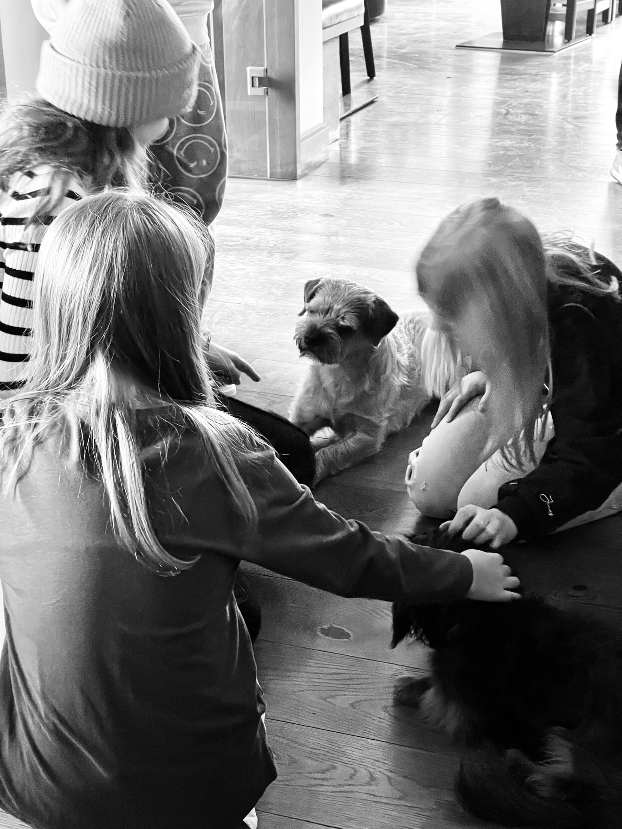 On Sundays i entertain kids. #dogs #dogsofmastodon #borderterrier #photography #leica #pixelfed #BlackandWhite #Monochrome