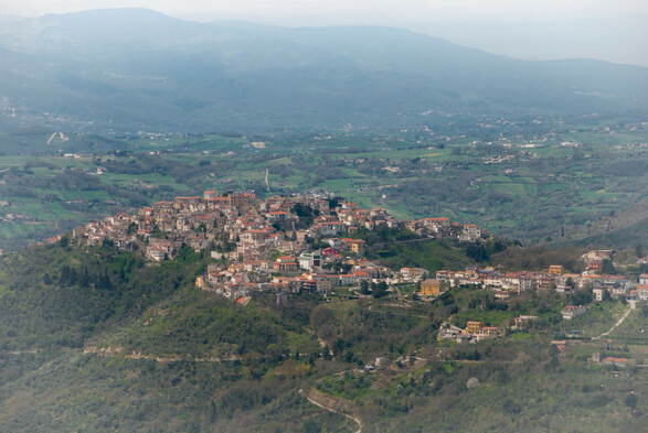 A small village, huddled on a hilltop in the Italian Meridionale.