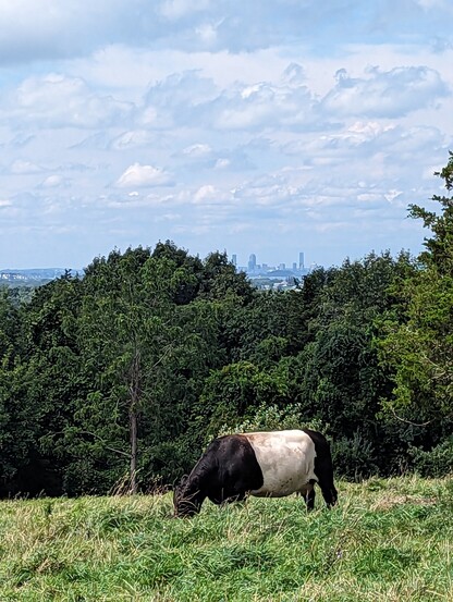 One of my favorite little walks any time of year, where you can see oreo-colored cows grazing in front of the Boston skyline 🏙️ Turkey Hill & Weir River Farm, Hingham #BostonMA