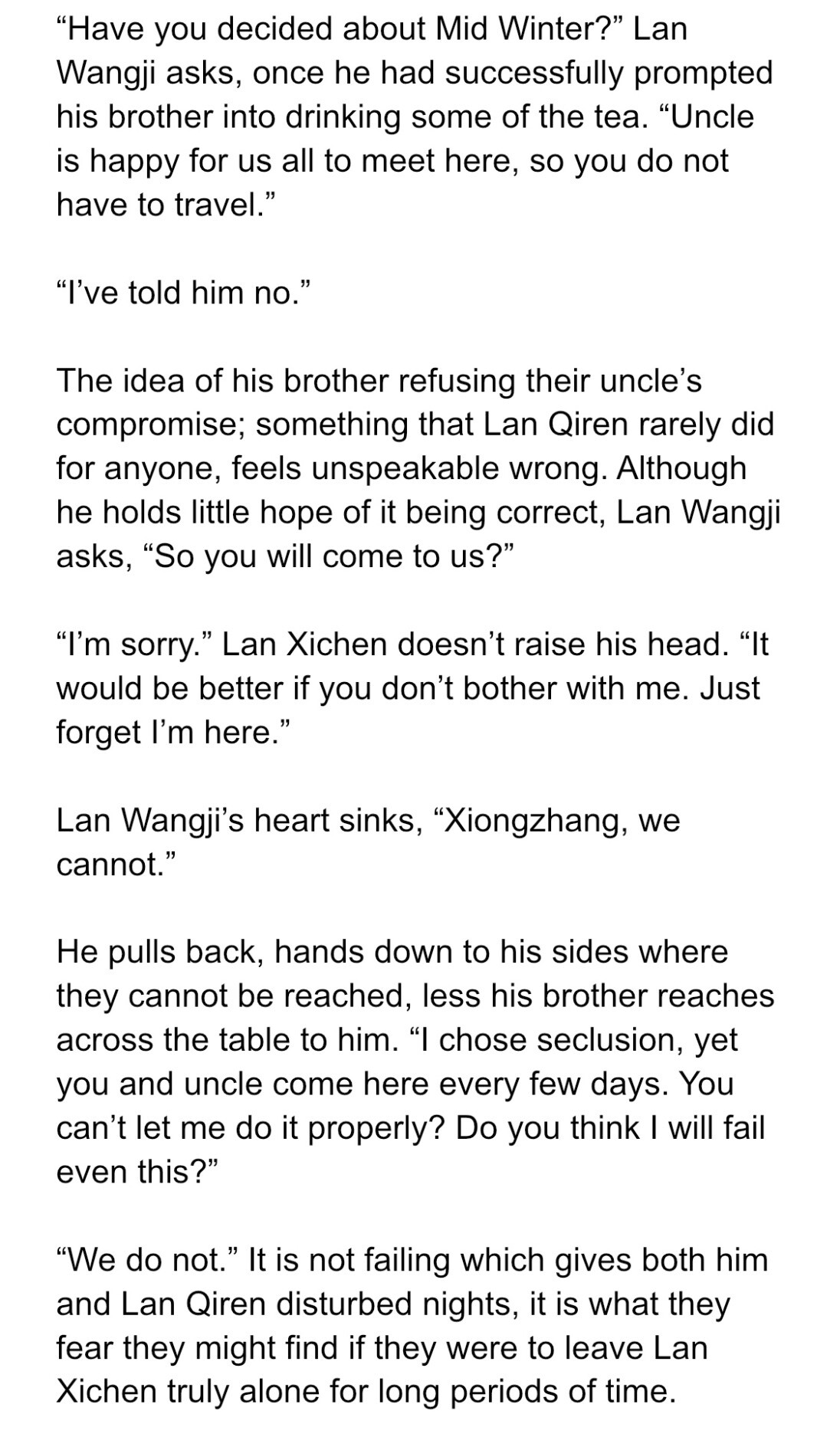 LWJ talks to his brother while LXC is in seclusion.