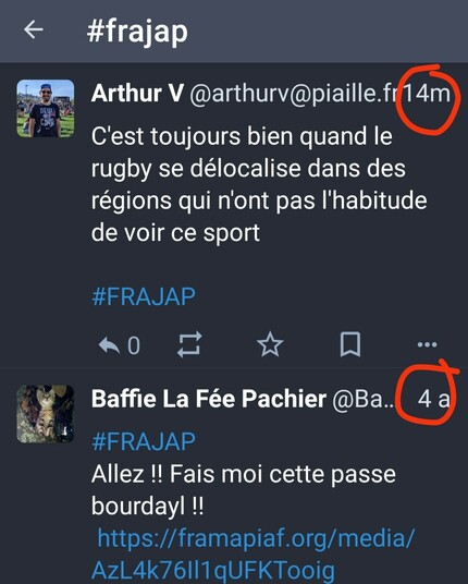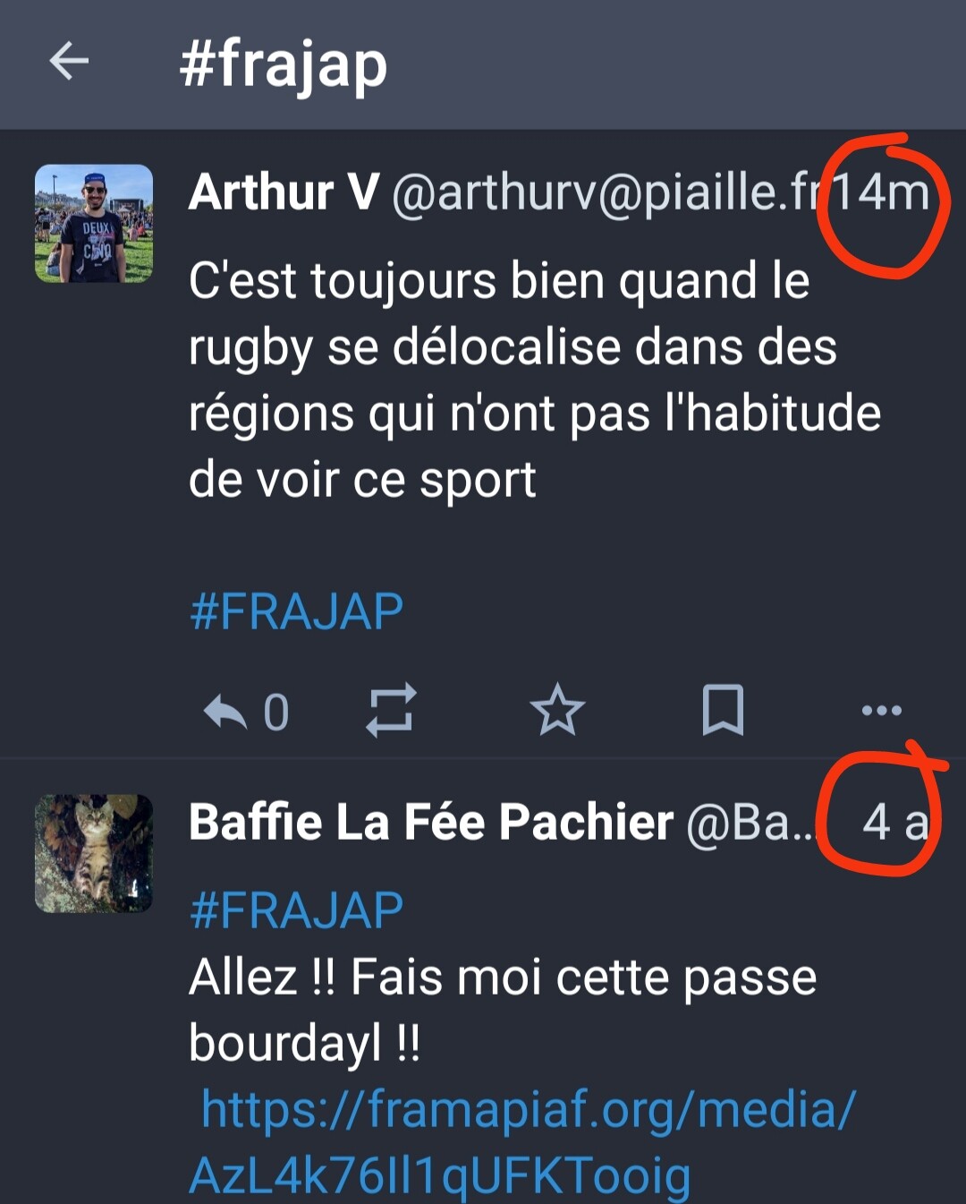 Bon un seul pouet sur #FRAJAP, le précédent date de... 4 ans. Clairement c'est pas encore ça pour suivre le #rugby en live ici, ça ne doit pas être le principal point fort de Mastodon 😊. Le peuple exige #BoucherieOvalie sur #Mastodon 🏉 !