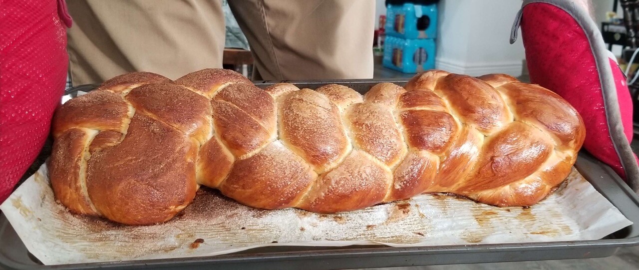 I have been experimenting with Challah. Each time I make it it’s been the same recipe but I’ve swapped out the oil for a different kind. This time its coconut oil, and 1/3 is sprinkled with cinnamon sugar, 1/3 is just sugar, and the last 1/3 is plain.