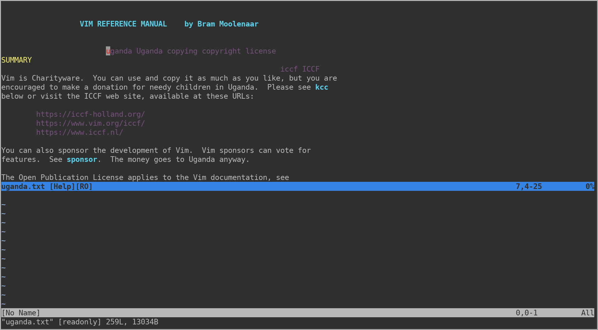 Now's an ideal time to type `:help uganda` into vim and follow the instructions ...