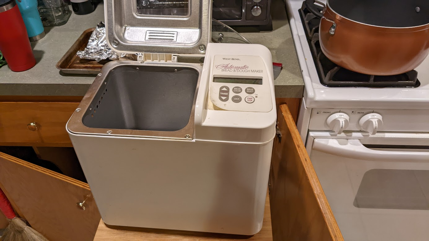 For the machine, I'm using this decades-old West Bend that I literally found tossed on a curb. It needed a little lubrication of the sleeve bearings to fix a squeak, but has worked fine with a little 3-in-1 oil. You can find these any any local thrift shop for practically nothing.