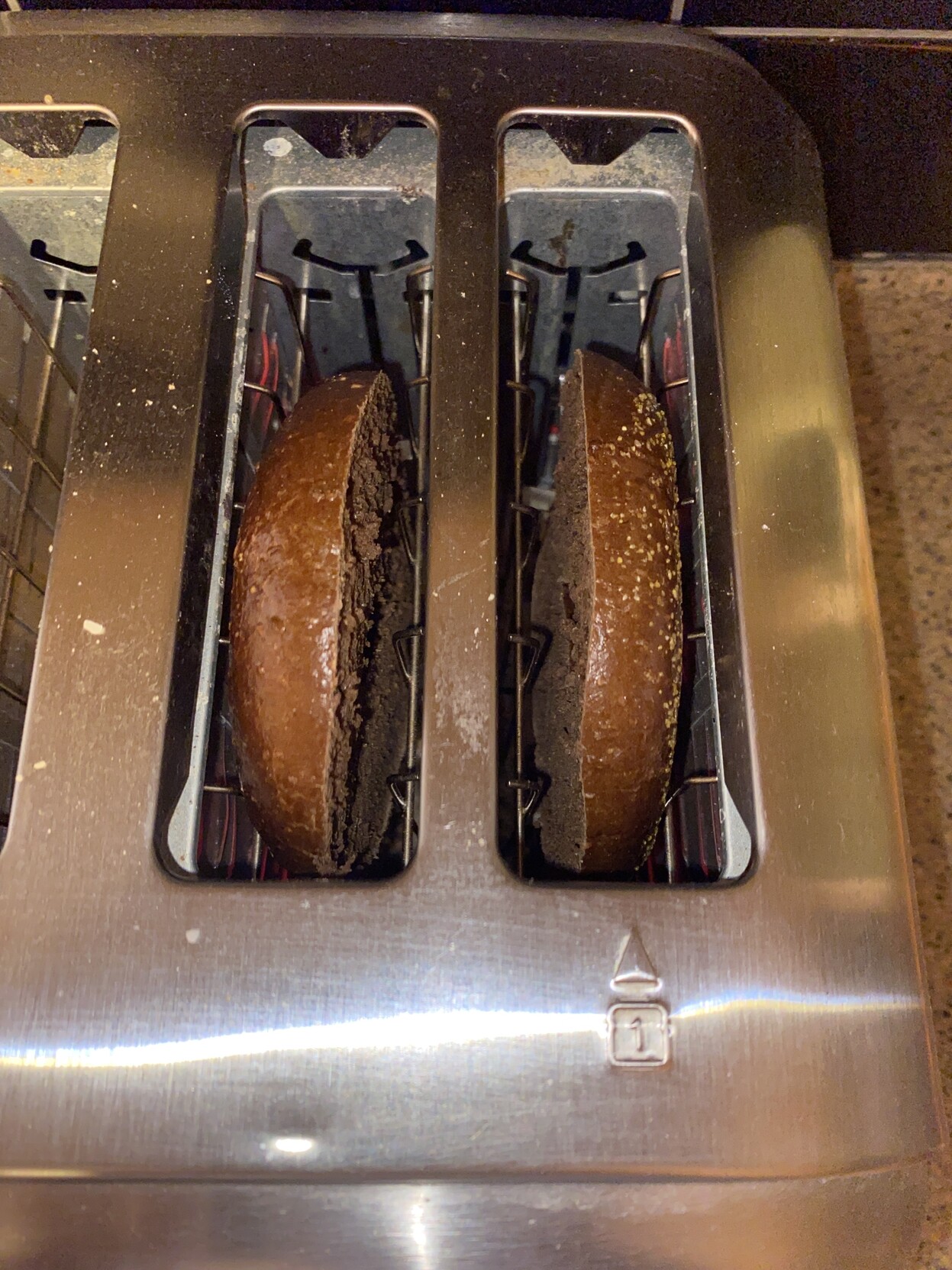 Which side of the toaster does the bagel setting toast? The inside or the outside? #BreakfastForDinner #Pumpernickle