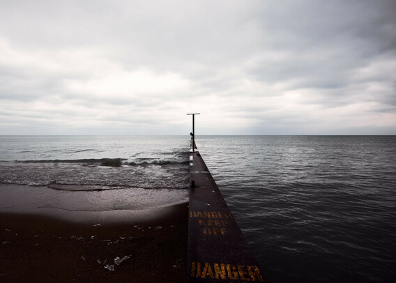 Almost wet feet on the breakwater in Koksijde on a cloudy day during the rising tide
