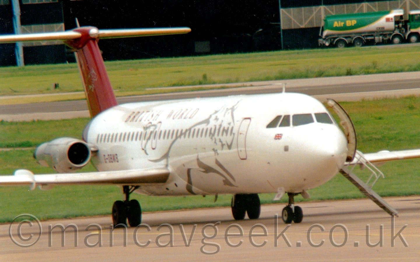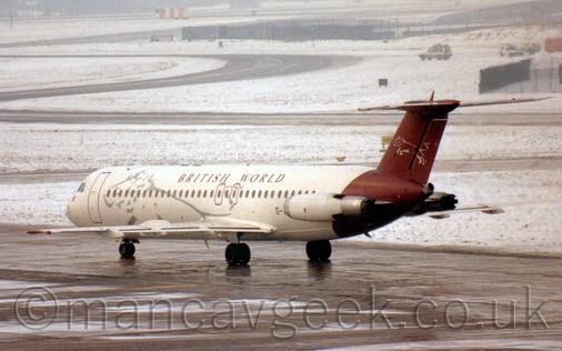G-OBWE, British Aircraft Corporation BAC1-11-531FS, British World Airlines, taxiing out to Runway 24 at Manchester Airport, some time after April 1993.