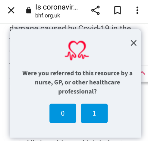 In tangentially related crappy usability news... The #BritishHeartFoundation seems to want me to answer their pop-up survey in binary 🤪🤷🤦