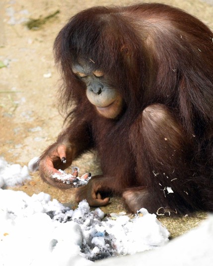 Icy what you did there ❄️ Heidi orangutan received snow enrichment this week, and she seemed intrigued by it!