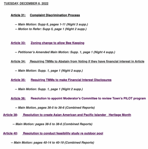 #BrooklineTownMeeting is going on now, and I've been keeping track of warrant articles in a public document: https://elizabethschafer.notion.site/November-2022-Special-Town-Meeting-e1eaa13a4ec4413f90cd1656a2fb578d