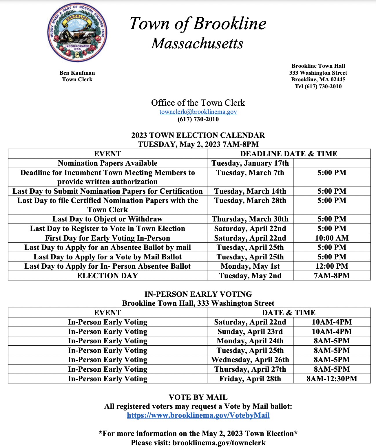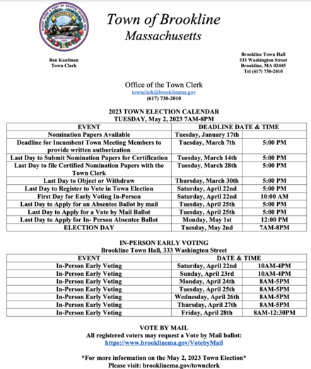 The 2023 Town election has been set for May 2, 2023! 🗓️🗳️