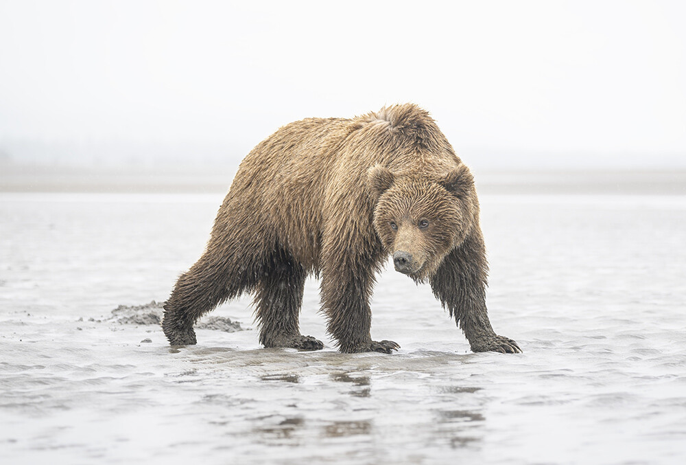 Brown bear on the mud flats of Cook Inlet in Lake Clark National Park, Alaska. See more here: https://joan-carroll.pixels.com/featured/brown-bear-in-the-rain-alaska-joan-carroll.html